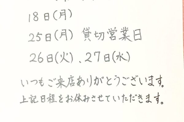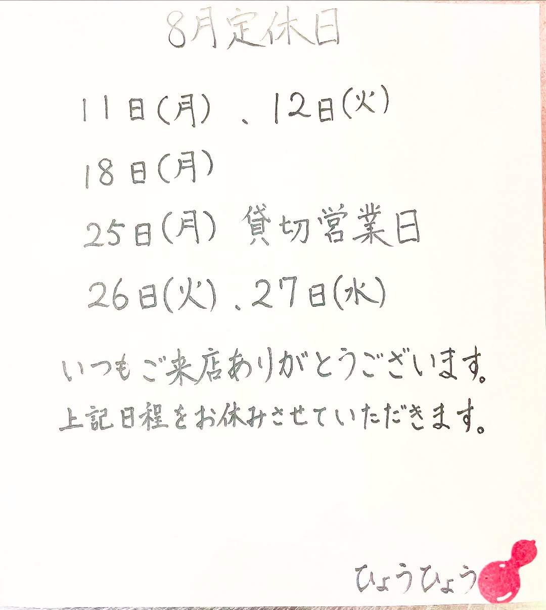 25日(月)貸切りの予約が入りましたので、代休で27日(水)をお休みさせて頂き〼🐖
